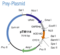 Description: Grow´n´Glow ACE1 Yeast Two-Hybrid System - Detection of Protein-Protein Interactions. The yeast two-hybrid system is an intelligent versatile genetic approach for the detection of protein-protein interactions in vivo. It depends on the ability of specific separated DNA binding and transactivation domains to reconstitute an active transcription factor complex if interacting proteins are fused to these domains. Clones expressing interacting proteins are consequently detected through the activity of reporter genes. MoBiTec´s ACE1 Two-Hybrid System is a powerful tool for gene discovery and functional analysis and very useful for efficiently identifying protein-protein interactions in vivo. It combines the advantages of the copper-inducible transcription factor ACE1 and the copper resistance-mediating CUP1 gene with the proven green fluorescence protein (GFP) as reporter. Interaction of two proteins fused to the DNA-binding and transactivation domains of ACE1, respectively, can be consequently detected by 1) growth of the cells on copper-containing media and 2) the copper-dependent expression of the strongly-fluorescent GFPuv which renders those colonies to fluoresce brightly green under UV light. Thus, this innovative technique greatly facilitates an efficient one-step selection of potential positives expressing interacting proteins in copper-containing media and under UV light. It allows a fast, highly sensitive and more reliable monitoring of protein interactions in living cells because interacting clones are identified by a growth selection as well as a strong fluorescence signal. Changing the copper concentration allows to select for different protein-protein interaction strengths. Features: Allows to select for different protein-protein interaction strengths • More efficient detection of protein interactions in vivo by the copper-inducible CUP1/ACE1 system • Fewer false-positives by stringent selection for copper-resistance • Improved time-saving selection of positives with the well-established advantageous GFP reporter • No requirement for external substrates such as X-Gal when screening for positives • Suited for the development of high-throughput screening assays